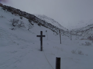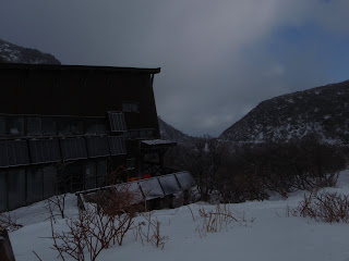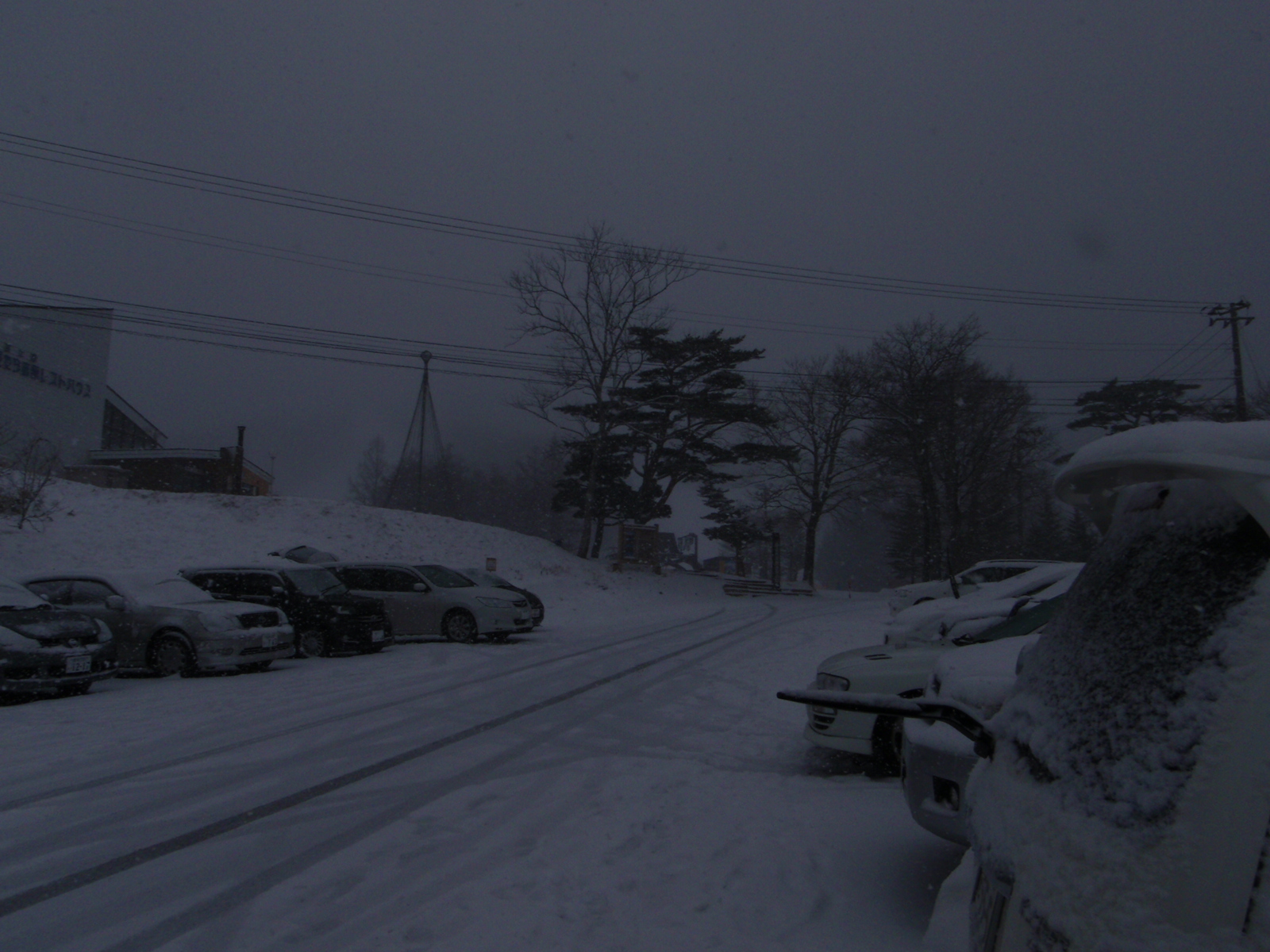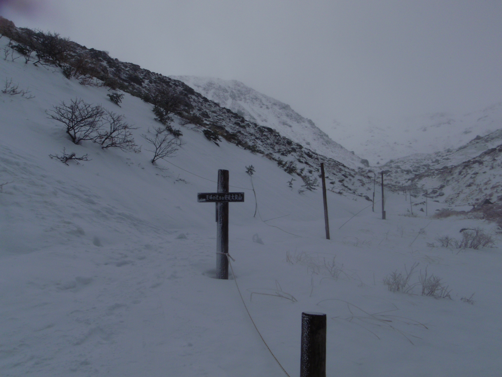 休憩後、小屋の前の斜面を登って行くと、いつのまにか雪が降っていた。視界が悪く、帰り路が心配になってきたので、山頂に向かう人を尻眼に、峰ノ辻の手前で引き返した。大晦日をくろがね小屋で過ごす人たちがたくさん登ってきた。なぜか、独りだとやたらと声をかけられる。もういちんち泊まってってぇ、餅つくから…などと笑顔で言われながら、下山すると、駐車場で車が雪に埋もれそうになっていた(埋もれそうは大げさ)。スキー場からのくねくね坂道をビビり気味に運転し、風呂にも入らず帰宅した。