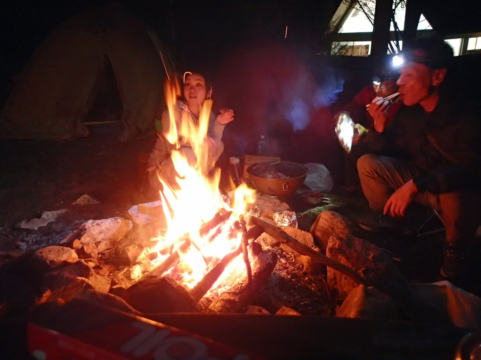 夜は焚火を囲んで夜宴。とてもいいキャンプ場です。