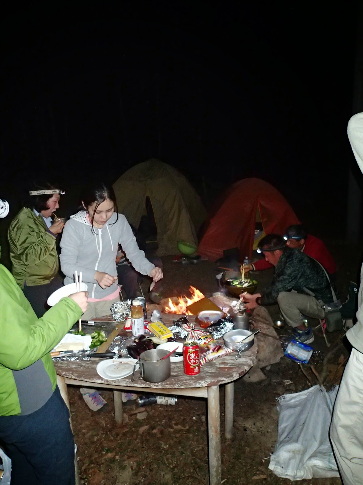 廻り目平キャンプ場にテントを張り、3パーティーに分かれクライミング。